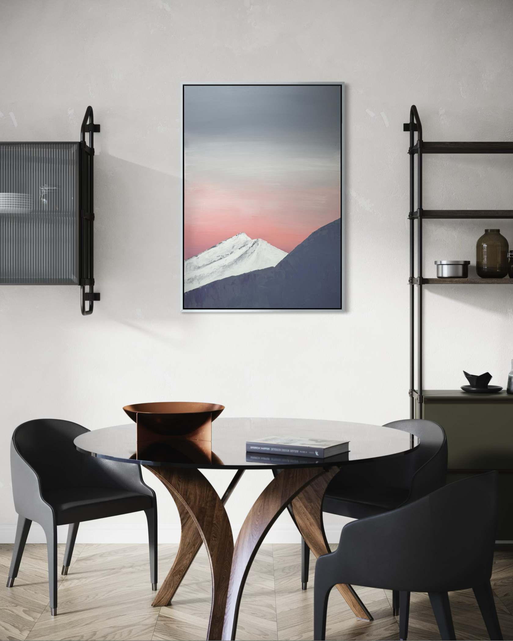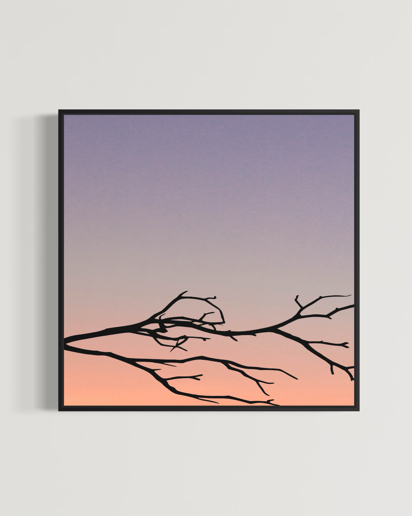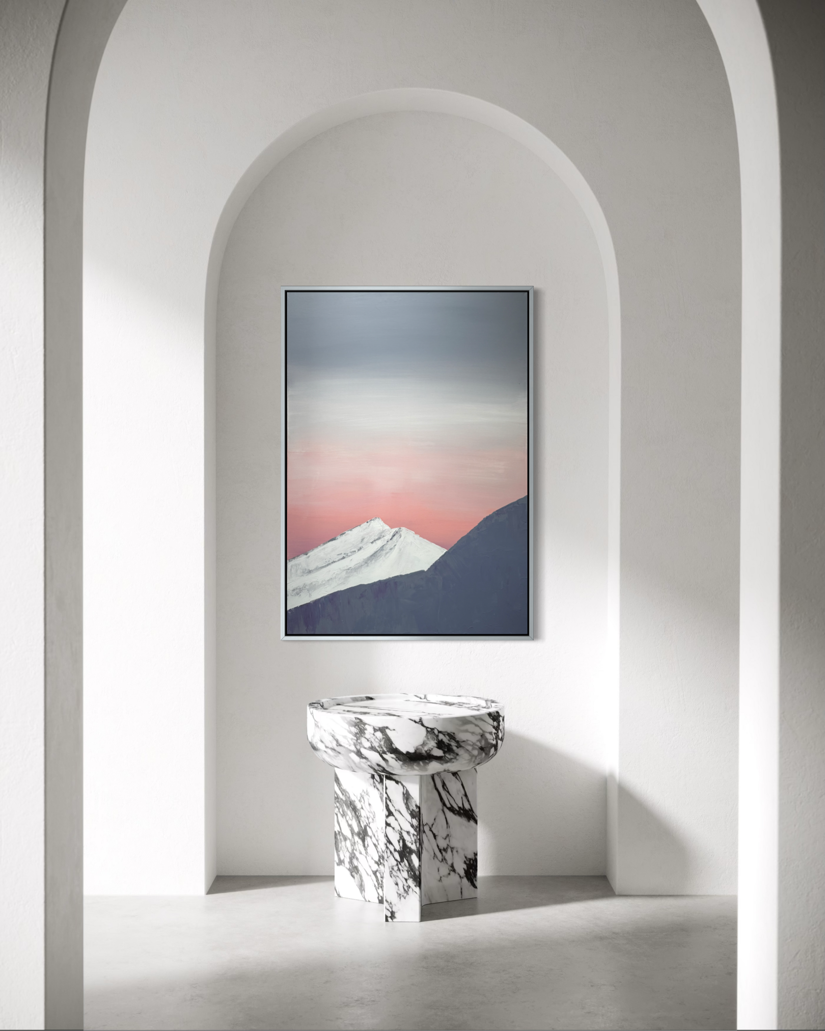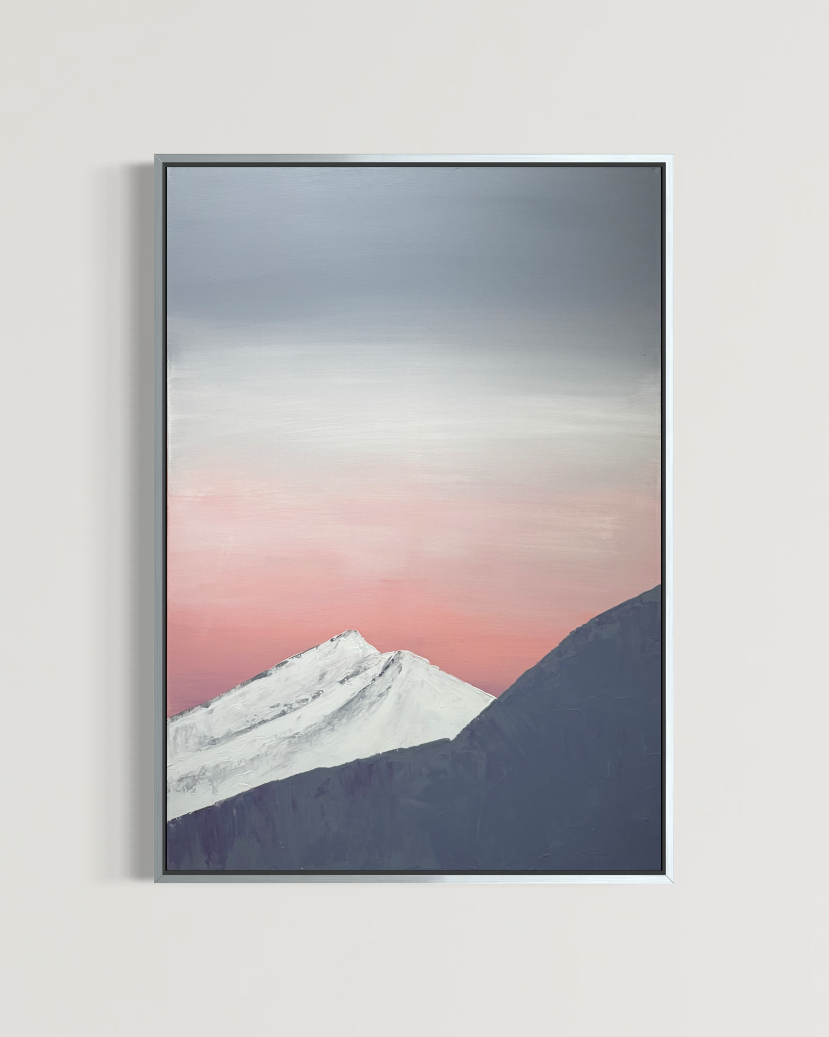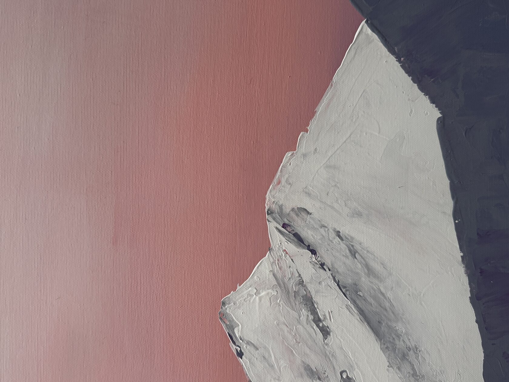 A delicate acrylic painting where warm and cool tones subtly intertwine. I was inspired by the feeling of winter - its silence, transparent cold, and the unique calm that gently wraps around winter days. The cold winter shades are softened by warm tones in the sky, creating a sense of balance, comfort, and inner warmth even in the midst of cold.