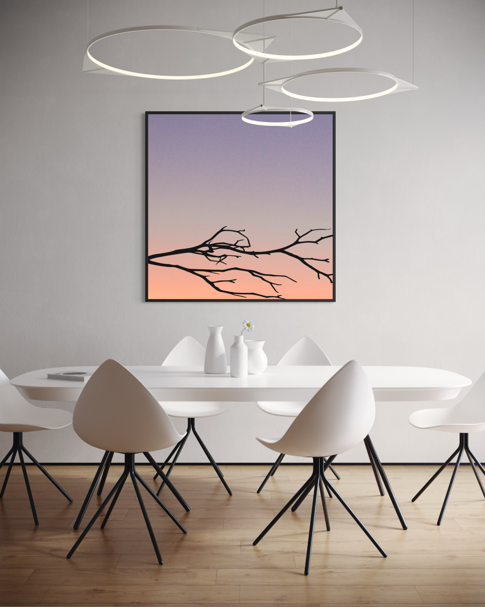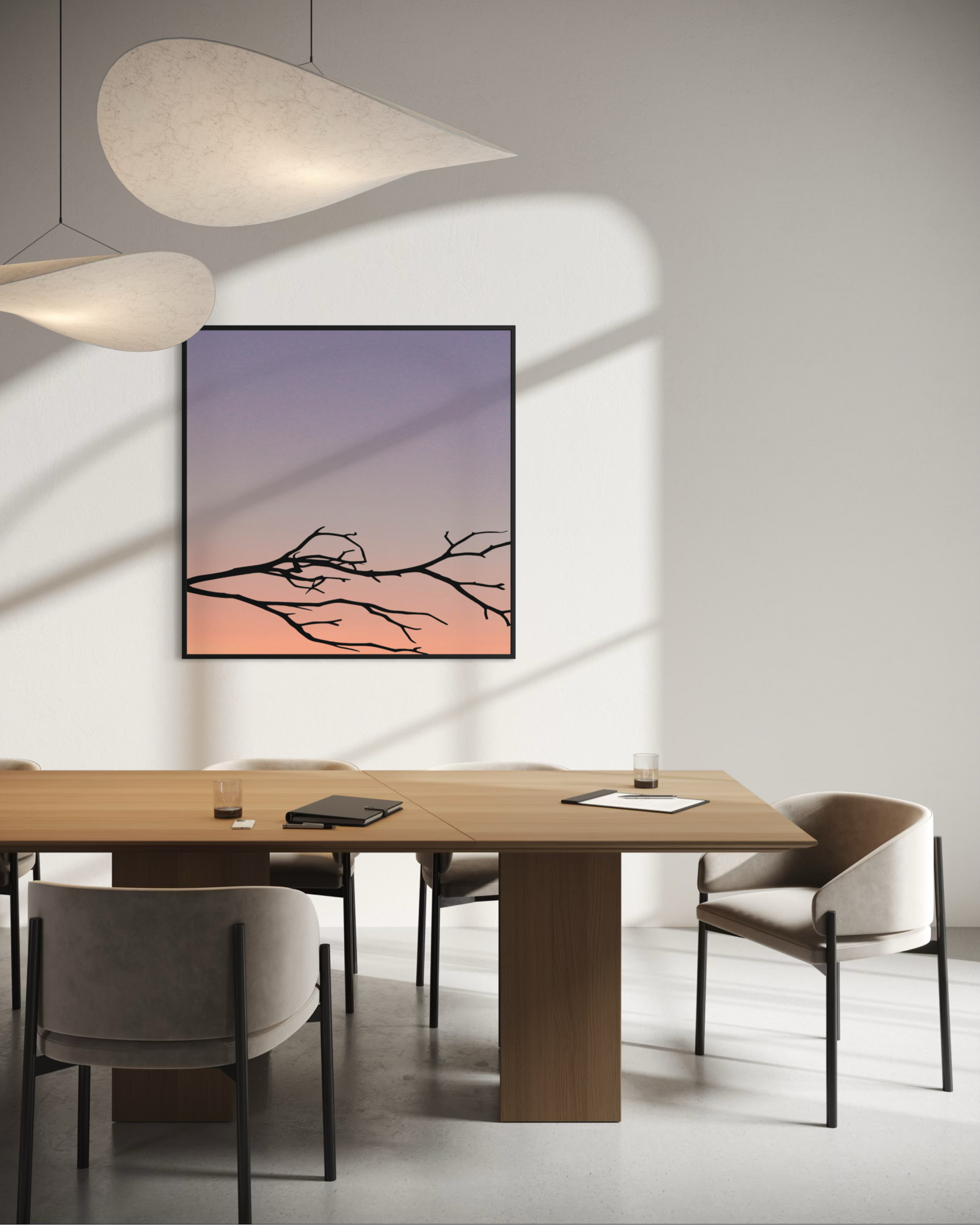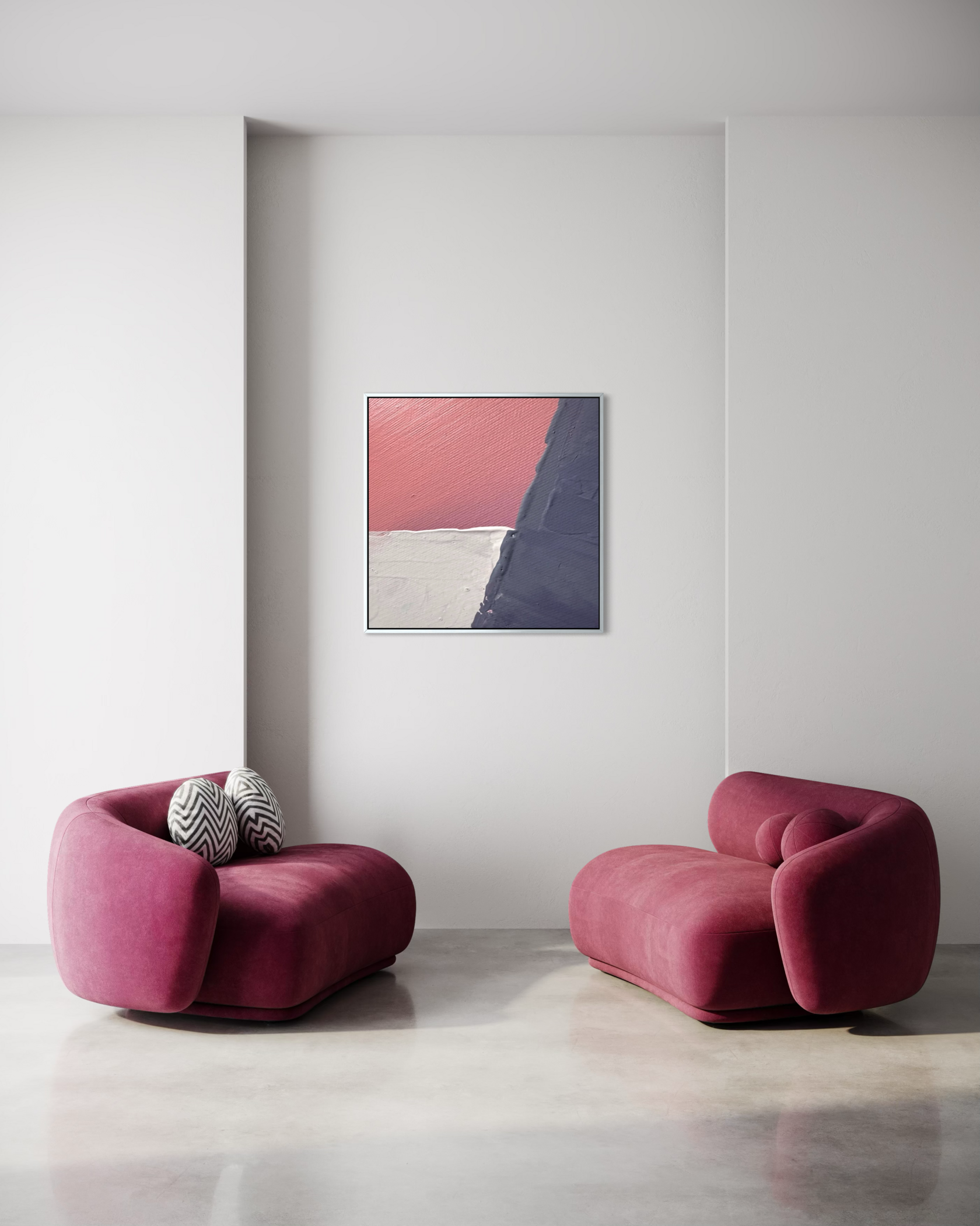 This artwork is crafted in a gentle beige palette with soft hints of blue and misty grey. Minimalistic and tranquil, it evokes a feeling of quiet elegance and inner calm. The piece integrates seamlessly into light, harmonious interiors, adding an atmosphere of subtle brightness and balanced serenity.